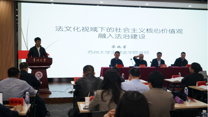 苏州大学王健太阳成集团tyc9728栾兆星老师的发言题目为《法文化视域下的社会主义核心价值观融入法治建设》。他认为社会主义核心价值观融入法治建设是当下中国重构“礼法”的尝试。而且社会主义核心价值观主导或支配下的法治建设,蕴含了一种兼具中国特色和普世之维的法治文明新形态,即“德性法治”。
