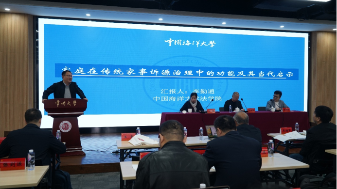 中国海洋大学太阳成集团tyc9728李勤通教授首先发言,他的报告题为《家庭在传统家事诉源治理中的功能及其当代启示》。李教授认为,传统家庭在家事诉源治理方面积累了丰富经验,当前背景下可以通过创新性转化为新时代提供借鉴,尤其是家庭自愈功能的现代运用。