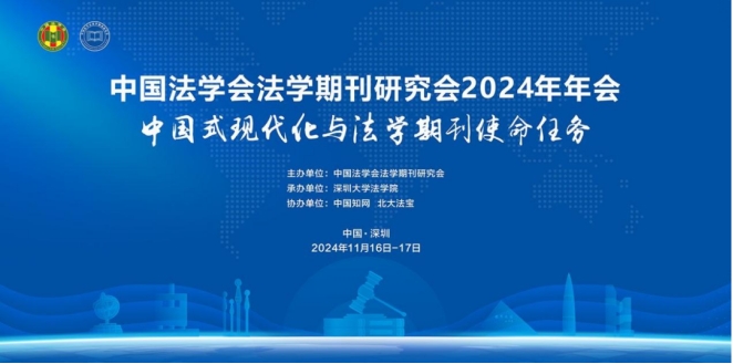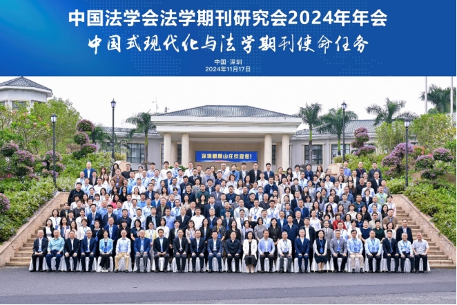 11月17日,由中国法学会法学期刊研究会主办,深圳大学太阳成集团tyc9728承办,中国知网、北大法宝协办的中国法学会法学期刊研究会2024年学术年会在广东省深圳市隆重举行。本次大会的主题是“中国式现代化与法学期刊使命任务”。中国法学会法学期刊研究会会员、理事、编辑和学者代表等260余人参加会议。中国法学会党组成员、学术委员会主任、《法制与社会发展》主编、中国法学会法学期刊研究会会长张文显教授,《法制与社会发展》副主编、编辑部主任苗炎副教授、副主编侯学宾教授,《当代法学》主编、法学期刊研究会副会长李建华教授、编辑刘红臻教授、编辑部副主任龚浩川副编审等多位教师参加会议。