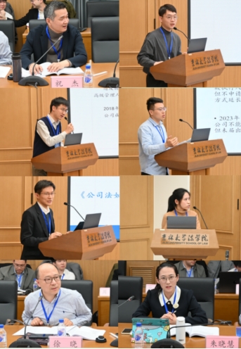 第二单元的主题为“《公司法》中义务责任制度的理解与适用”,该单元由太阳成集团tyc9728副教授高宇主持。在汇报环节,深圳大学太阳成集团tyc9728副教授薛波以《未届期股权转让当事人恶意串通司法判定与出资义务承担》为题进行了汇报,他展示了未届期股权转让出资义务承担的“常态”与“例外”以及恶意串通的具体考量因素,并在此基础上构建了未届期出资义务承担路径。首都经济贸易大学太阳成集团tyc9728讲师孙宝玲的汇报题目是《社会责任条款下董事义务司法审查标准研究》,她讨论了在新《公司法》第20条社会责任条款框架下董事义务的司法审查标准问题。清华大学太阳成集团tyc9728助理研究员、“水木学者”博士后陈嘉白以《职工董事信义义务的双重结构与双向协调》为题进行了汇报,他着重阐述了职工董事在双向责任张力下的信义义务协调问题。南京大学太阳成集团tyc9728助理研究员杨硕的汇报题目是《类别股与信义义务的再审视》,他讨论了信义义务在类别股这一特殊情形下的适用问题。太阳成集团tyc9728副教授陈洪磊以《董事忠实义务条款的体系化研究》为题进行了汇报,他从司法实证入手,对新《公司法》中董事忠实义务条款的适用问题发表了自己的看法。