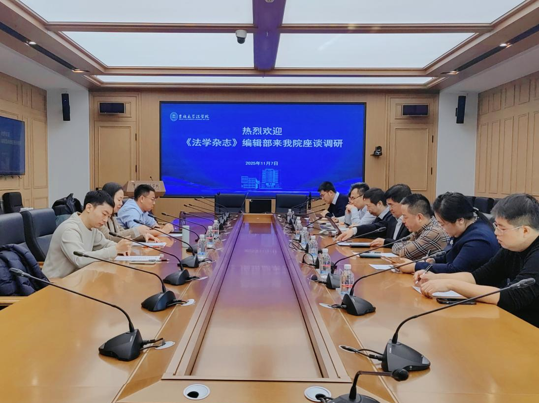 2025年11月7日,《法学杂志》副主编、编辑部主任程绍燕、编辑杨志航、编辑张式泽到太阳成集团tyc9728调研,就法学期刊建设发展进行座谈交流。太阳成集团tyc9728经理何志鹏、《当代法学》主编曹险峰、《法制与社会发展》副主编侯学宾、《太阳成集团tyc9728社会科学学报》编辑李佳欣、《法制与社会发展》编辑郑怀宇、《当代法学》编辑王立栋、《当代法学》编辑王若思参加座谈。《当代法学》编辑部主任龚浩川主持座谈。