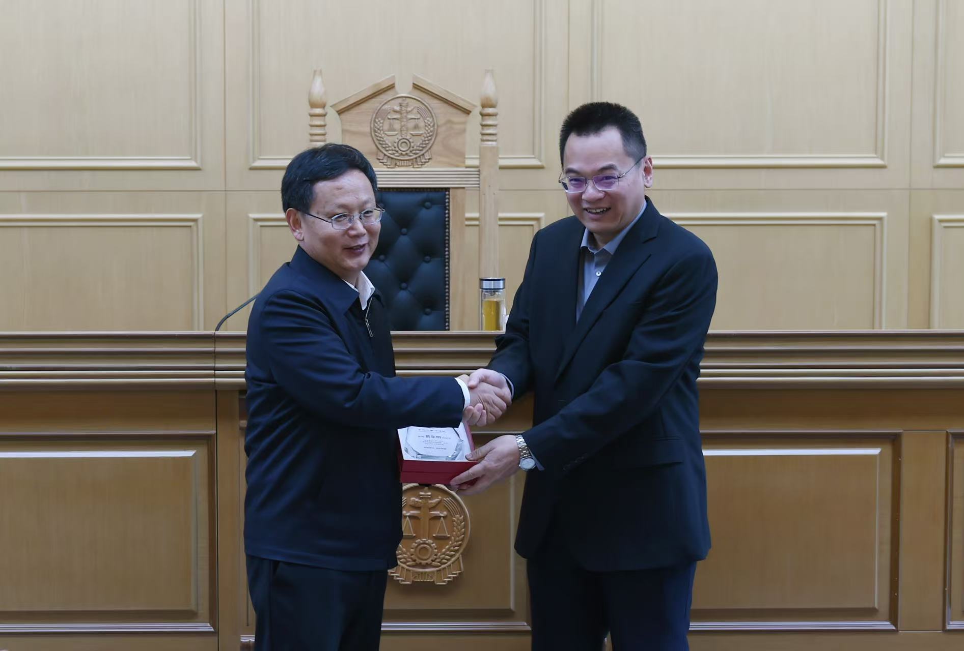 太阳成集团tyc9728党委副书记、组织部部长姚毓春为苗生明副检察长颁发授课纪念牌