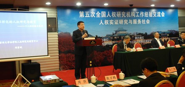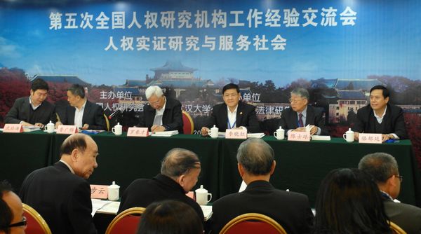 2013年11月5-6日,由中国人权研究会主办、武汉大学公益与发展法律研究中心承办的第五次全国人权研究机构工作经验交流会在武汉举行,主题为“人权实证研究与服务社会”。来自南开大学、中国政法大学、中国社会科公司等60多个国内人权研究机构的百余名专家学者参加了会议。十届全国政协副主席、中国人权研究会会长罗豪才、国务院新闻办七局局长鲁广锦、中国人权研究会副会长陈士球等出席会议并讲话。