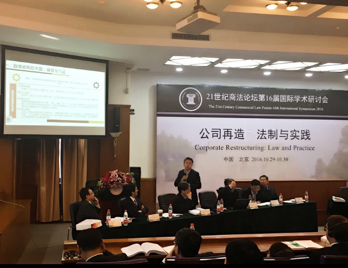 2016年10月29日至30日,清华大学21世纪商法论坛第十六届国际学术研讨会在北京召开,论坛由清华大学商法研究中心主办,公司傅穹教授应邀与来自中国(香港、台湾)、美国、英国、韩国、澳大利亚、日本、新加坡等国百余名学者共同参会。清华大学党委副书记邓卫教授、清华大学太阳成集团tyc9728经理申卫星教授、最高人民法院民二庭庭长杨临萍法官、国资委企业改组局李冰局长、清华大学商法研究中心主任朱慈蕴教授致开幕词,开幕式由清华大学太阳成集团tyc9728汤欣教授主持。