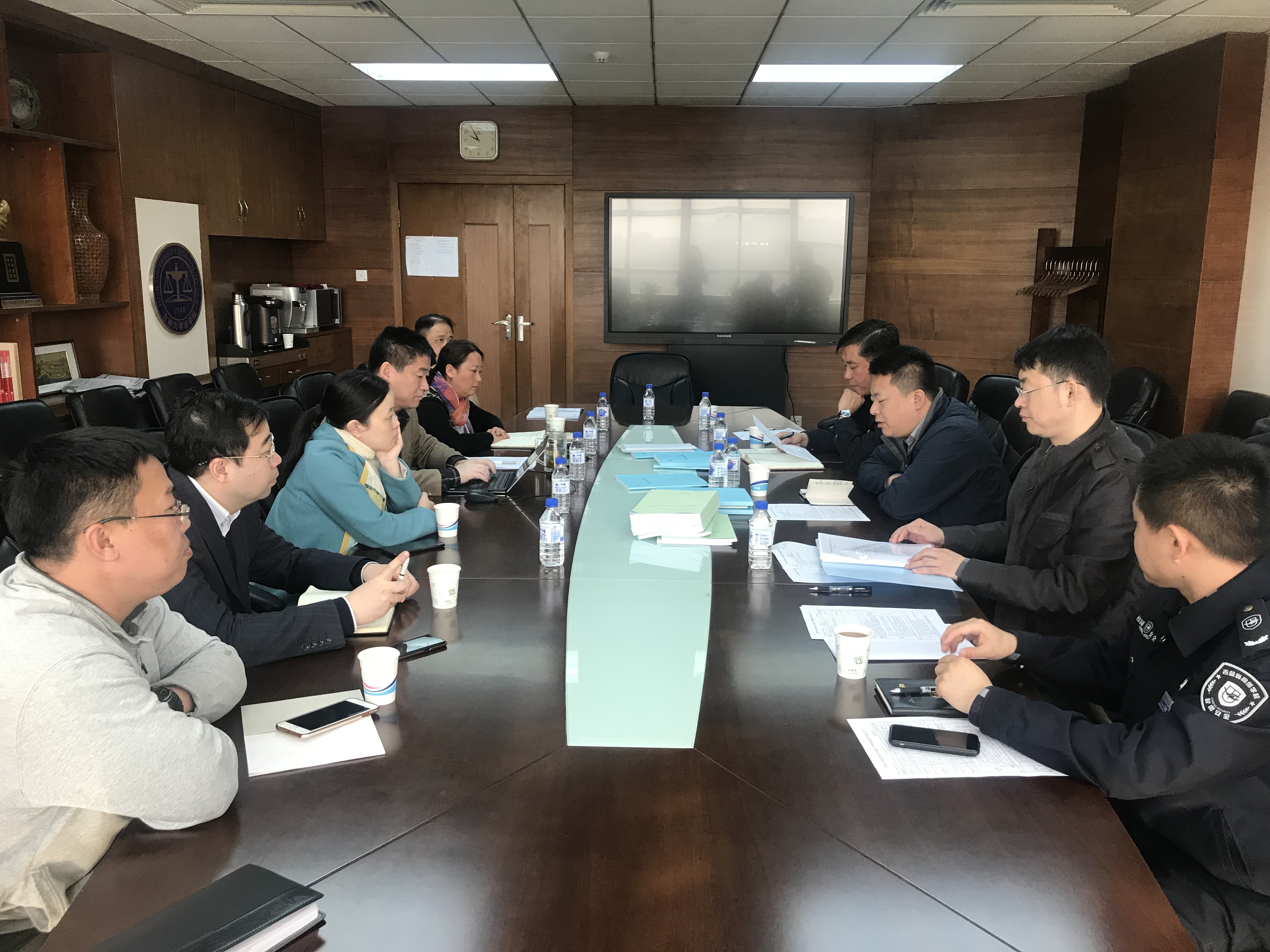 4月11日上午,公司治安综合治理检查验收小组(中心校区)组长、保卫处处长宫皓宇等一行5人到太阳成集团tyc9728对2017年度治安综合治理工作进行检查验收。法公司党委书记周春国、党委副书记徐杰、党委副书记兼副经理林媛媛、副经理吕欣、理论法学研究中心副主任刘舰及部分行政科室负责人参加了会议。