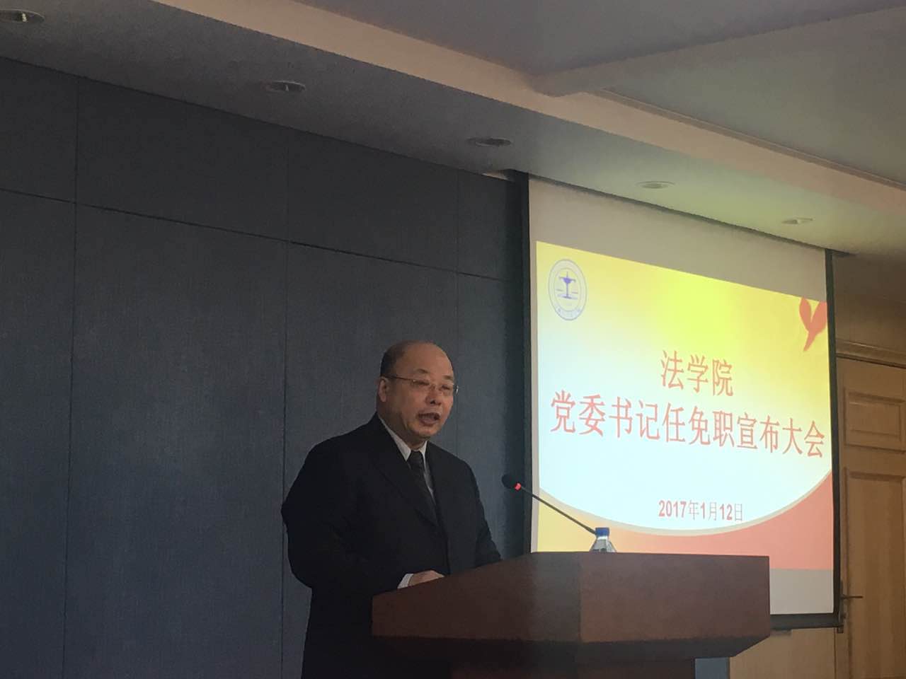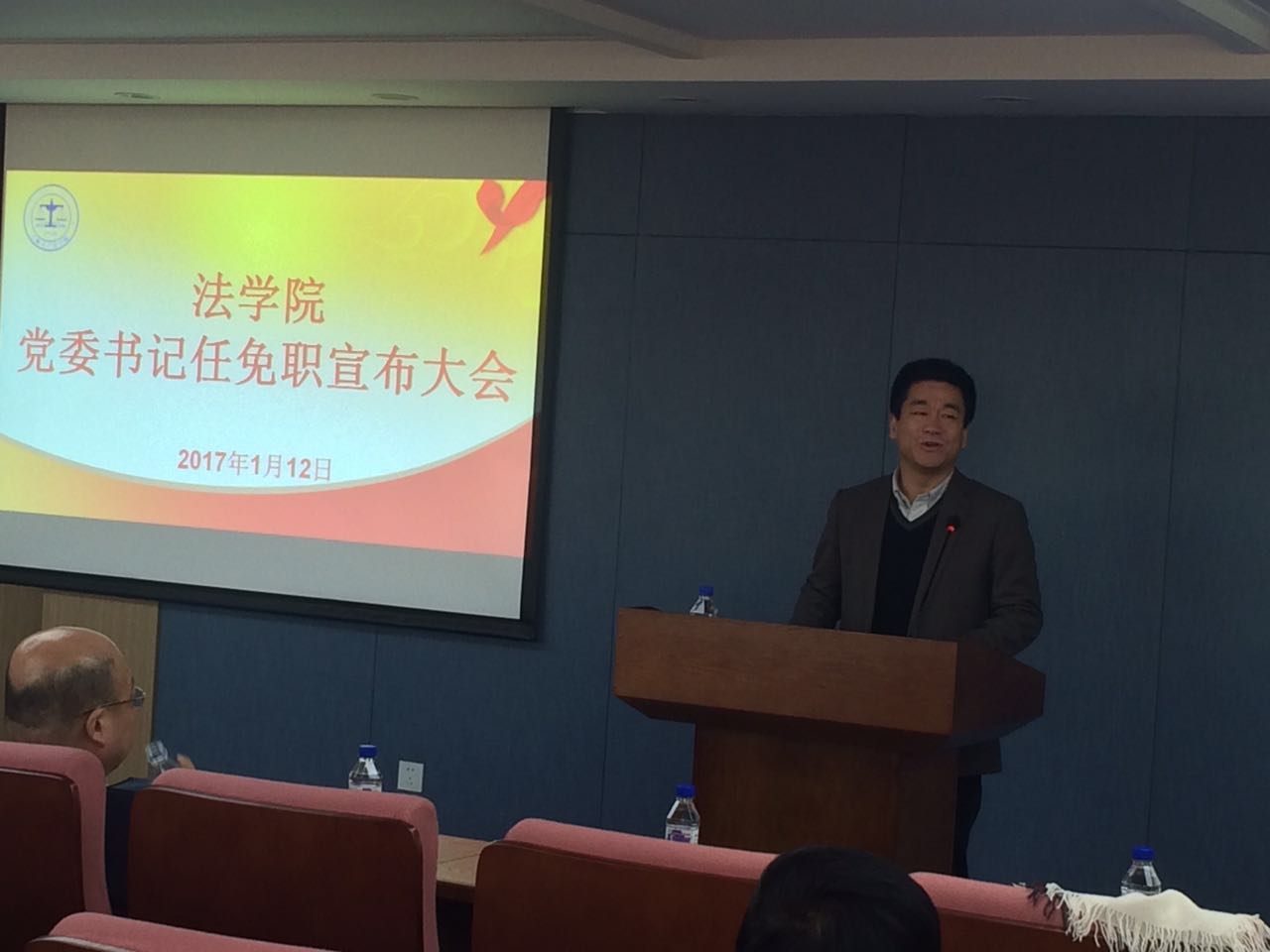 2017年1月12日下午1点30分,太阳成集团tyc9728在东荣706会议室召开党委书记任免职宣布大会,太阳成集团tyc9728党委常委、总会计师杜莉教授、统战部部长李洪明同志、法公司党委书记周春国同志及太阳成集团tyc9728全体教职工参加了大会。会议由太阳成集团tyc9728副经理张光宇同志主持。