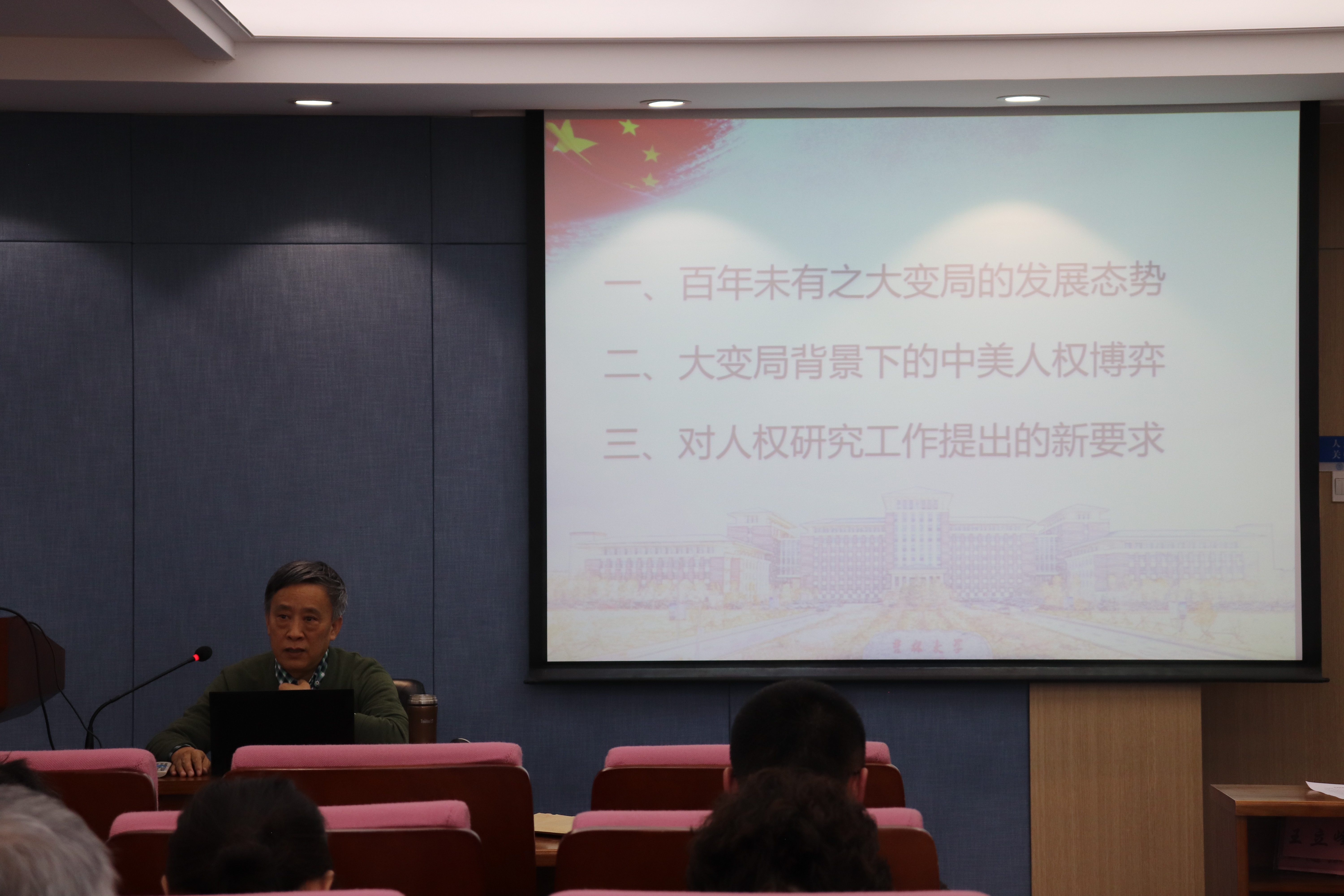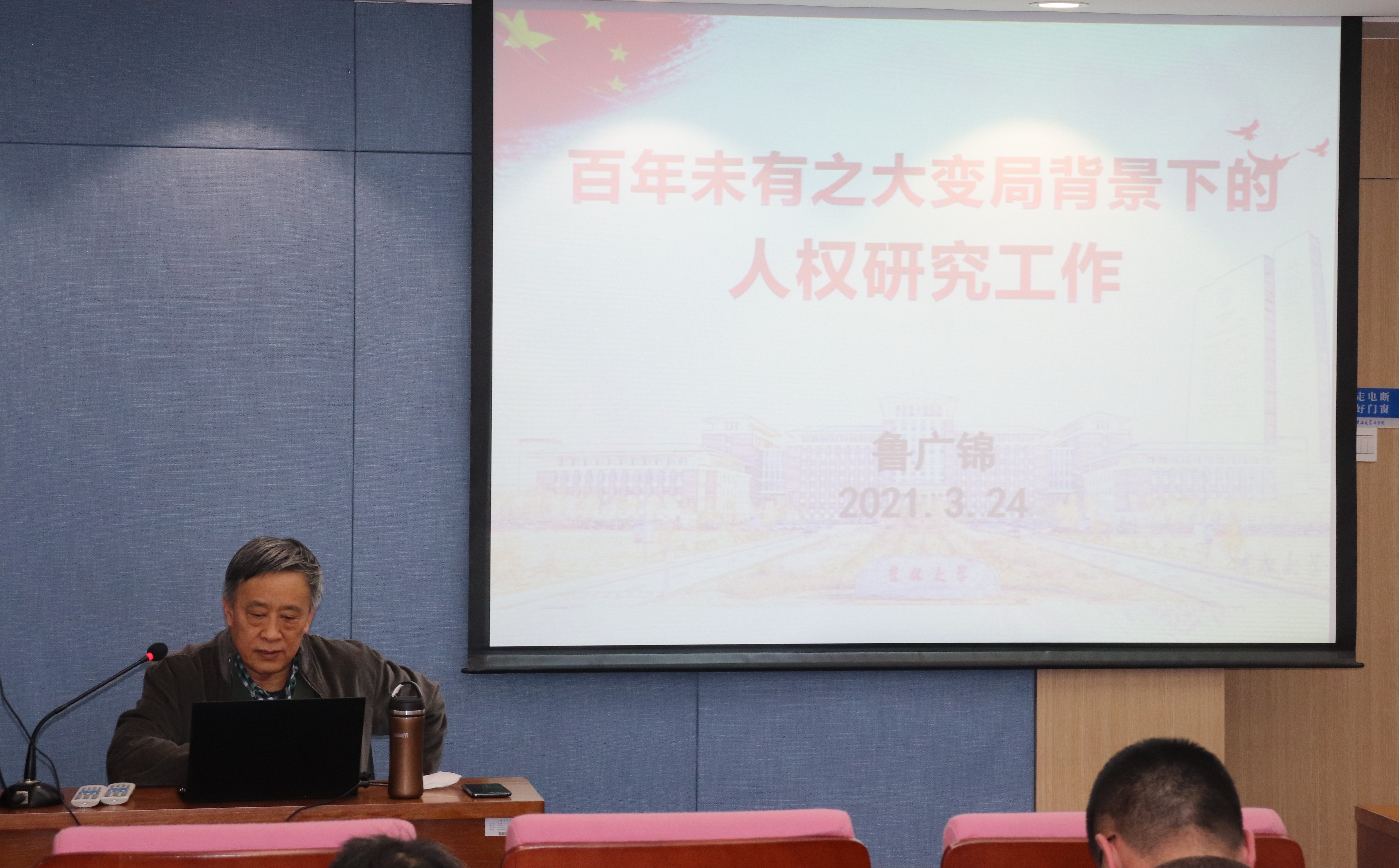 3月24日下午,太阳成集团tyc9728新聘匡亚明卓越教授、太阳成集团tyc9728、太阳成集团tyc9728人权研究中心人权学科带头人、中国人权研究会秘书长鲁广锦,在公司就“百年未有之大变局背景下的人权研究工作”,做专题学术报告。报告会由经理、人权研究中心执行主任何志鹏教授主持,太阳成集团tyc9728、人权研究中心近百名老师和研究生参加。