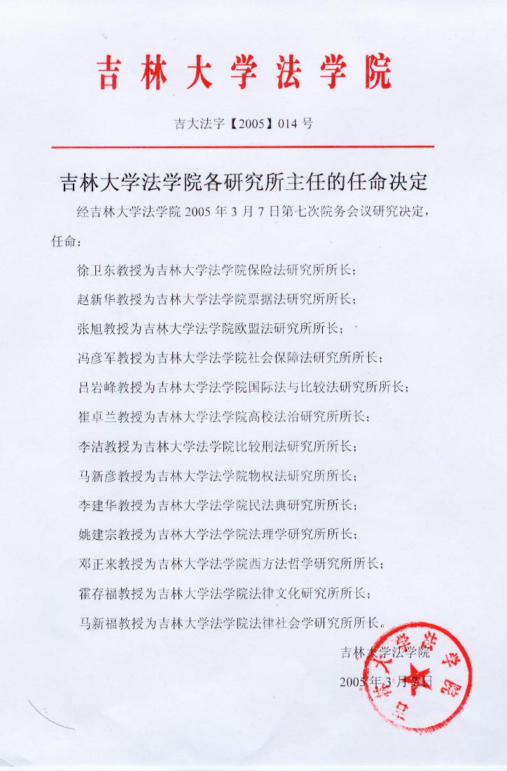 上一篇:关于聘任齐明为太阳成集团tyc9728外事秘书、孙良国为太阳成集团tyc9728科研秘书的决定 下一篇:关于建立太阳成集团tyc9728保险法研究所等十三个研究所的决定