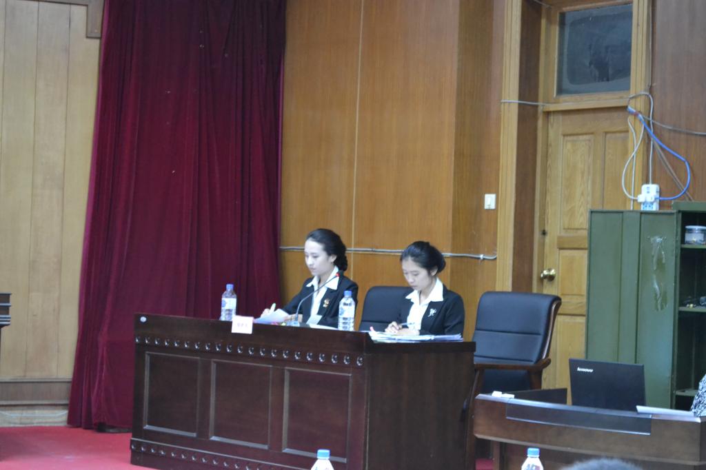 公诉方有一说一代表队的发言选手是林小雅和喻梦妍,两位女选手作为率先发言的一方,可谓是临危不惧,充分发挥出了应有的水平;辩护方五与伦比代表队的选手陆慧敏和韦雪在回答评委质询时也处变不惊,镇定自若,得到了合议庭成员的肯定。进入举证质证环节以后,现场气氛达到白热化,双方选手唇枪舌剑,将课堂所学的理论知识灵活地运用于庭审,比赛激烈而又秩序井然,为现场观众展示了一次精彩的庭审过程。
