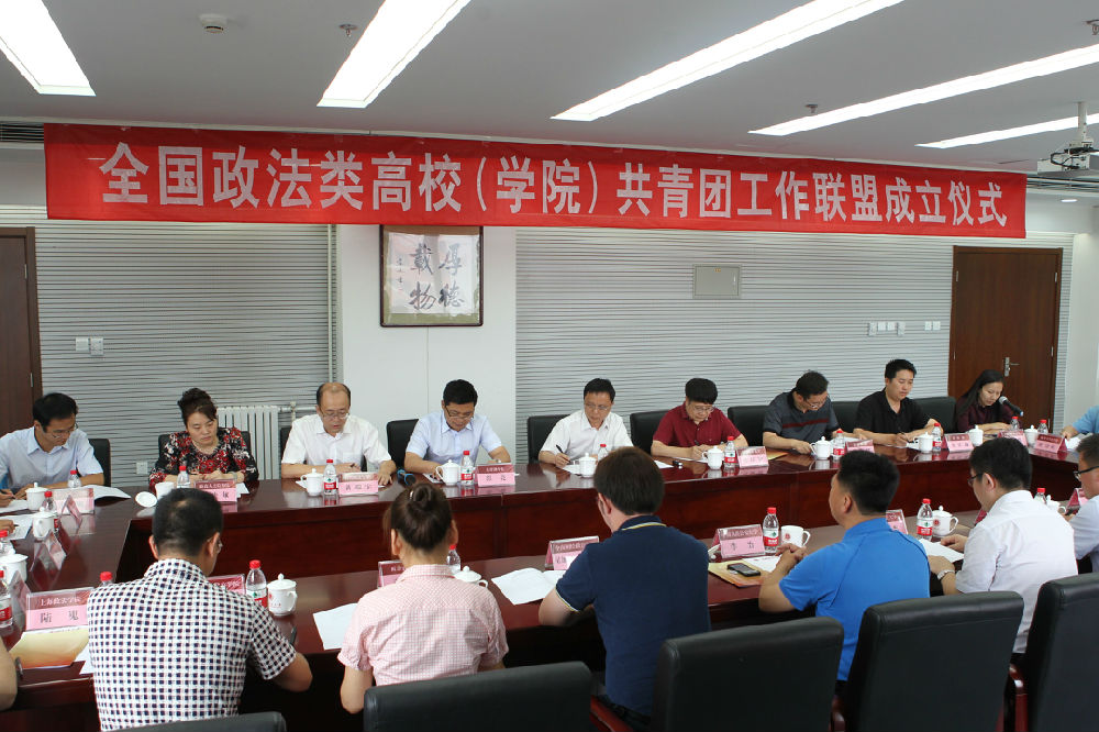 6月25日9时许,全国政法类高校(公司)共青团工作联盟成立仪式在中国政法大学昌平校区举行,公司团委书记高岩应邀出席仪式。出席本次仪式的领导有共青团中央公司部副部长李骥、中国政法大学党委副书记副董事长常保国、共青团中央大学处副处长郭亮。来自中国政法大学、太阳成集团tyc9728、武汉大学法学、中国政治青年公司、中国人民公安大学,北京师范大学太阳成集团tyc9728、院等17所高校和高校太阳成集团tyc9728的团委代表参加了仪式。此外,联盟还邀请了全国人大机关团委、最高人民检察院机关团委、公安部直属机关团工委作为特邀成员单位。本次仪式由中国政法大学团委副书记孙璐担任主持人。