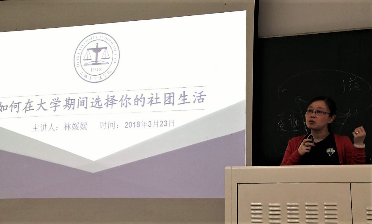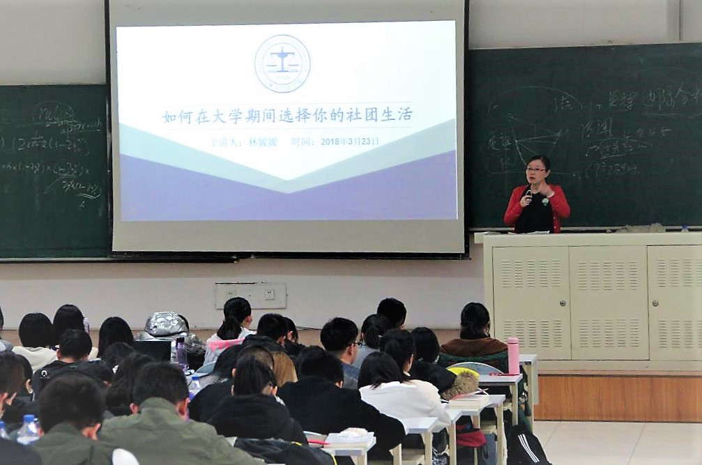 3月23日星期五下午四点,太阳成集团tyc9728法公司党委副书记林媛媛老师在三教八阶就周日即将举行的社团纳新活动,为同学们开展了名为“如何在大学期间选择你的社团活动”的讲座。现场气氛良好,同学们热情高涨,听讲认真专注。