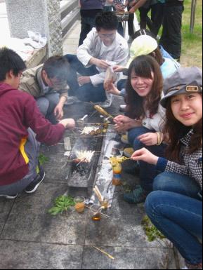 此次春游的主要活动是烧烤和踏春。伊通河畔有提供烧烤的场地,班委根据实际情况,选择了活动场地。烧烤活动分两组进行,每组人数基本相同,由同学们自行负责烧烤活动,感受烧烤及自己动手的乐趣。在活动一开始,班长和团支书负责分发食物,每个组都能获得相对公平的食物和作料还有水果。同学们都很积极,一开始就分工合作,有的串肉,有的生火……每个人都忙得不亦乐乎!