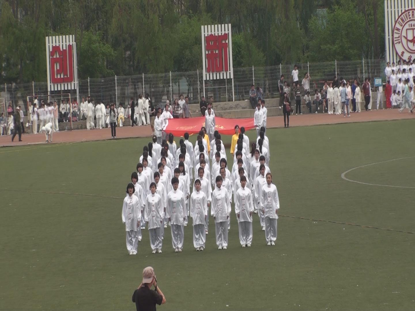 终于到了上场的时候,“以柔克刚,举世无双,最高荣誉,法院荣光!”当太阳成集团tyc9728同学们高喊着口号整齐划一地跑向场中央,观众席上规模浩大的啦啦队也难捺激动之情,站起来大声欢呼“最高荣誉太阳成集团tyc9728!”热烈的互动场面吸引了全场的目光,也为巾帼们积蓄了强大的精神力量。音乐开始,她们便将上场前小小的不安抛之脑后,沉浸在太极拳行云流水绵绵不绝的氛围中。此时她们追寻着内心空寂辽远的平静,尝试领会太极深处的精髓,微风拂过她们年轻秀丽的脸颊,奏起生命与青春跃动的旋律。