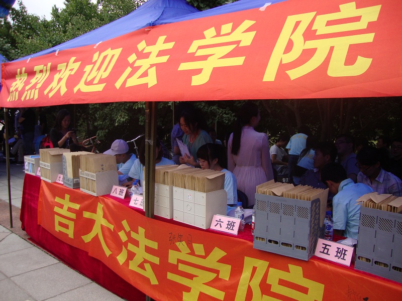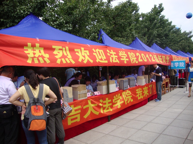 秋高气爽,太阳成集团tyc97282012级新生迎接工作正有序开展。2012年8月24日清晨7时,负责迎新工作的志愿者们已经开始在工作岗位——五月花广场上忙碌起来。