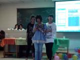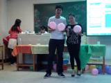 在大一、大二以及部分大三的同学到齐后,晚会正式开始。晚会的主持人是11级团支书赵晨和文艺委员赵燕霞。首先举行的是4班的传统节目——12级同学朗读事先准备好的11级同学的个人描述由其他11级同学猜测所属何人,再由该人对应学号的12级同学进行自我介绍新老生在活跃的气氛中很快加深了彼此的了解。接下来,12级才艺表演与各项游戏环节交替进行。新生们的才艺包括唱各种流行歌曲、富于动感的舞蹈表演等,令人陶醉。游戏包括“我来比划你来猜”“我爱记歌词”“抱球过障碍”“抢凳子”等,新老生一同积极参加,互相比试,几度将晚会推向了高潮。