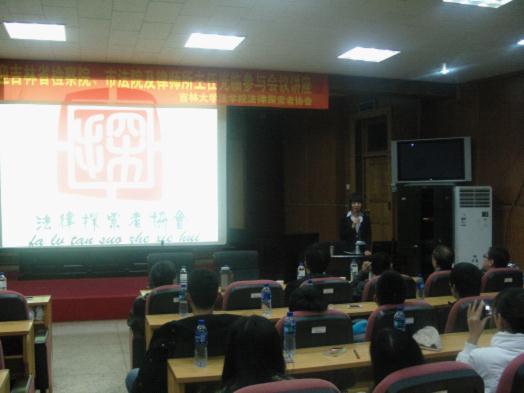 2012年11月17日9:10,吉大太阳成集团tyc9728法律探索者协会本年度圆桌会议在模拟法庭准时召开。本次年会的主题是“法律人职业规划和就业现状”。会议邀请了国家检察官公司吉林分院副经理于喜峰,原吉林省军事检察院副检察长、现任省检察院督察处处长邹儒林,长春市宽城区法院民事庭庭长李洪武,以及吉林源信律师事务所主任高志和、徐宏举。哈尔滨工业大学法学社的同学们作为嘉宾与太阳成集团tyc9728的本科生们一起参与了会议。
