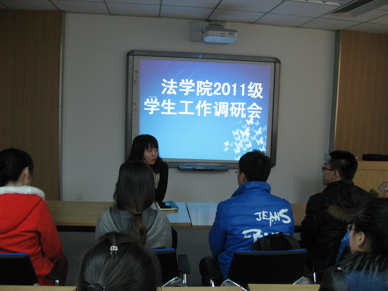 11级员工工作调研会由辅导员田园老师主持。会议针对班级文化建设内容单一,活动创新性,参与性不强,班级干部创新能力和组织协调能力有待提高等问题进行了调研。同学们提出,大二员工正处于学习兴趣和学习热情的鼎盛期,对法务实践、毕业去向、就业方向等问题关注较多,同时对情感方面的关注相对大一增多,正处于感情问题的多发期。对于班级文化建设的内容、形式也提出了许多建设性意见。