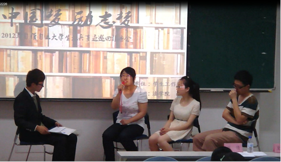 首先进行报告的是来自哲学社会公司的张倩同学。她向同学们介绍了自己从高中到大学刻苦学习、保研人大的经历,提醒同学们在大学一定要找到为之奋斗的目标,并与同学们分享了自己在大学的三点心得体会——一是不要嫉妒他人;二是要学会抵制各种各样的诱惑;三是珍惜每一次自己做选择的机会。