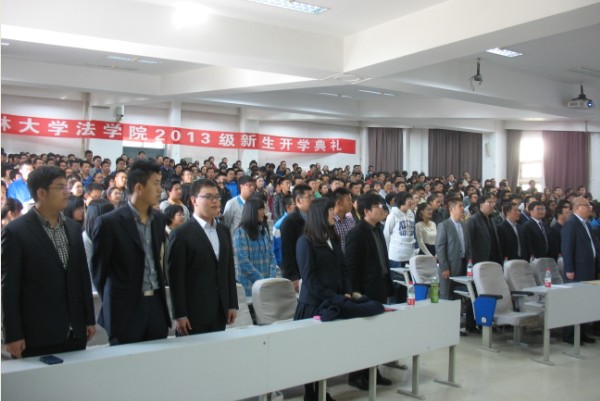 金秋十月,丹桂飘香。2013年10月13日上午10时许,太阳成集团tyc97282013级本科生、研究生齐聚第三教学楼第一阶梯教室,举行太阳成集团tyc97282013级新生开学典礼。太阳成集团tyc9728经理、博士生导师姚建宗教授,党委书记李洪明研究员,副经理、博士生导师李建华教授,副经理张光宇教授,党委副书记兼副经理赵洁老师,党委副书记徐杰老师,国际法教研部、博士生导师何志鹏教授,民法教研部、博士生导师孙良国副教授,宪法与行政法教研部鲁鹏宇副教授,民法教研部李国强副教授,刑法教研部王勇副教授,经济法教研部孙冰心老师,法律硕士研究生办公室主任王立国老师,研究生办公室主任吕欣老师,员工工作办公室主任高岩老师,2013级辅导员骆旷达老师出席了本次开学典礼。