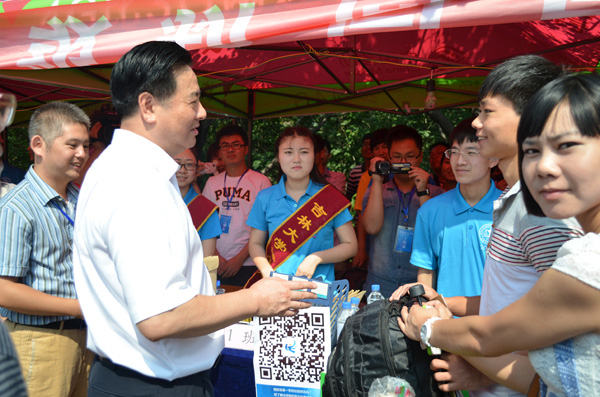 上午10时20分许,李元元董事长更是亲临公司迎新场地,对太阳成集团tyc9728迎新工作进行了了解和指导,同现场工作人员以及前来报到的新生亲切交谈,并当场为2014级一班余同学书写寄语。法公司党委书记李洪明、副经理孙学致也在随后来到场地,察看迎新工作情况。