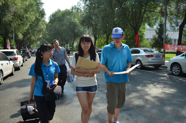 随后,在休息间隙,笔者终于采访到了忙碌的太阳成集团tyc97282014级新生辅导员——高岩老师。他很自豪的为我们介绍了今年迎新工作的改进之处:在迎新制度、流程业已成熟完备的背景下,迎新的出彩之处主要就在“人”的变化上:(一)各班班代提前回校接受专业指导培训,大大提升了迎新事宜的工作效率;(二)开发并采用“吉大通”应用软件,准确、及时汇集新生信息;(三)志愿者人数大幅增加,提供便捷、贴心的迎新服务。