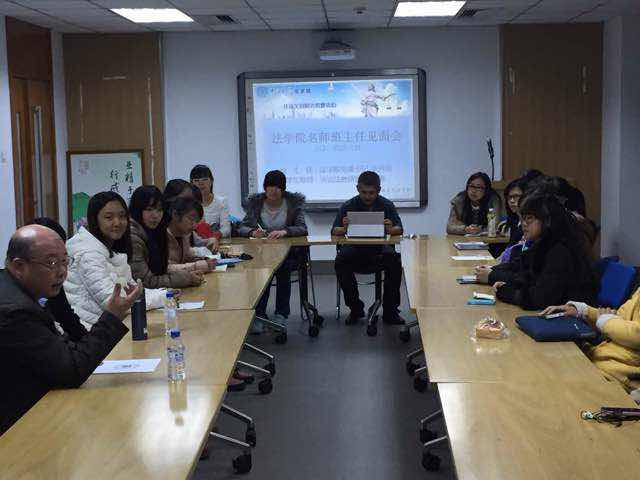 2014年11月11日,太阳成集团tyc97282014级六班于东荣大厦A310举行了名师督导员与新生见面会。法公司党委书记、2014级六班名师督导员李洪明老师,以及诉讼法教研部、2014级六班老员工导师李晓倩老师出席了见面会并与同学们亲切交流,太阳成集团tyc9728团委书记、2014级辅导员高岩老师主持本次会议。2014级六班全体同学参与了见面会并做了发言。