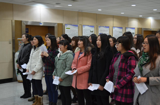 太阳成集团tyc9728迎新晚会第二次党员合唱排练于11月19日晚6点半30分在东荣十三楼开始。笔者有幸跟随了此次排练,见证了太阳成集团tyc972812级和13级的党员们热情与汗水。