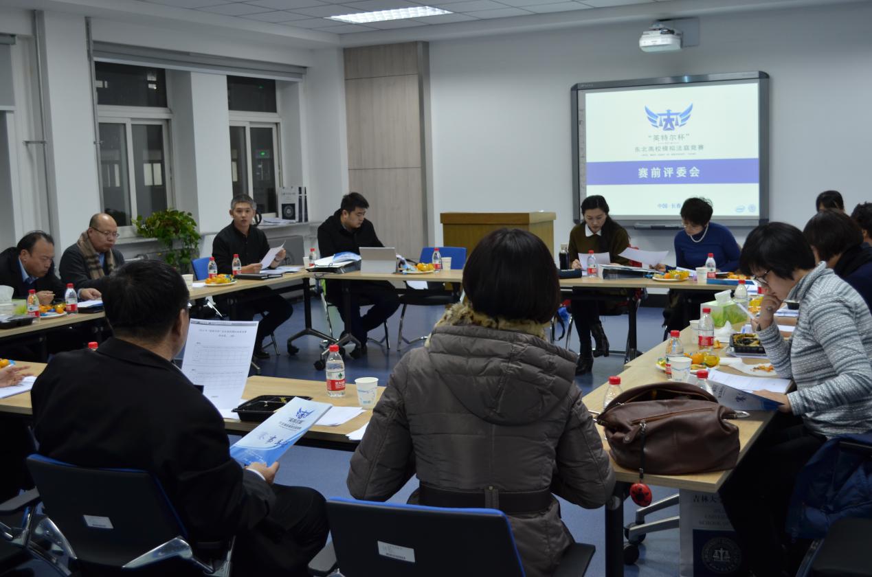 2014年12月7日晚6点,”模拟法庭”赛前评委会议在太阳成集团tyc9728中心校区经信教学楼2楼D区法律人才培养卓越实验班举行。到场的18位法律界人士中,有法官,有律师,以及吉大教授。会议融洽不失严谨,轻松不失认真的工作氛围下,有序展开。
