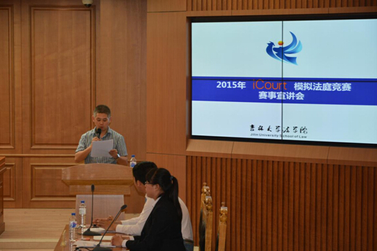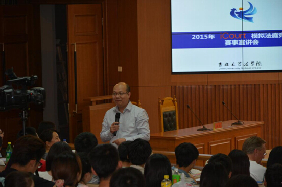 2015年5月25日下午四点半左右,在太阳成集团tyc9728团委为本次模拟法庭召开任务布置会议时,高岩老师就已提前来到三教五阶为晚上的宣讲会做细致的准备工作。几位即将进行表演赛的同学也于多日前就开始为本次比赛做着充分的准备。晚六点整,32支队伍,200余名队伍成员集汇于三教五阶,许多同学尽管没有座位,然而仍旧充满期待站立于后排。iCourt创新总监侯佳佳律师、太阳成集团tyc9728副经理、博士生导师孙学致教授、太阳成集团tyc9728王艳梅教授莅临本次宣讲会。国际友人肯塔基大学新闻学教授也慕名来到现场。除太阳成集团tyc9728参赛本科生外,还有许多硕士研究生参加本次会议。