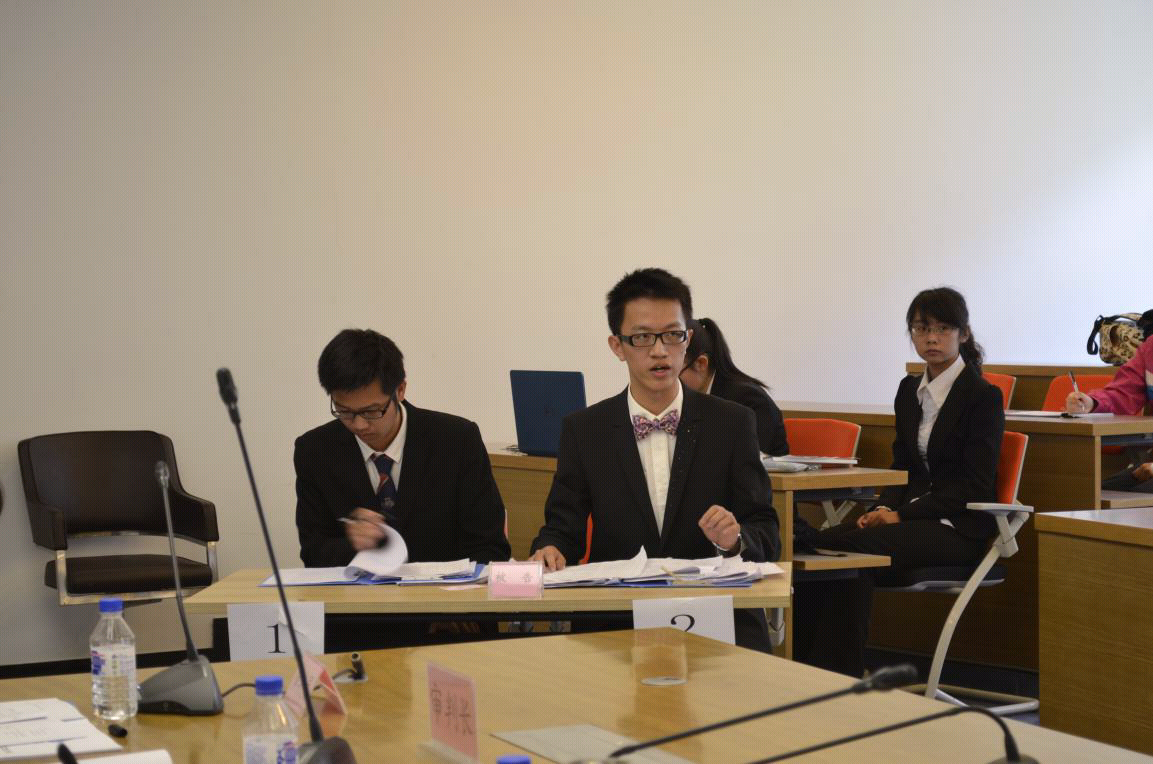 主席首先介绍了合议庭成员:审判长李立娟,审判员田洪鋆和侯学宾,接着介绍了原告方“我们柒”(于文敏、徐润)及被告方“笑而不语”(卢炼、苏文路)。在主席将比赛规则及注意事项宣读完毕后,本场比赛正式“开庭”。