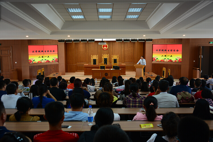 8月29日,下午一点三教五阶,座无虚席,在辉煌庄重的模拟法庭中,15级新生家长会隆重召开。太阳成集团tyc9728经理蔡立东教授、法公司党委副书记兼副经理赵洁老师、2014级员工辅导员高岩老师、2015级员工辅导员田园老师,2012级辅导员马旭老师,2013级辅导员骆旷达老师及各班班主任参加了会议。