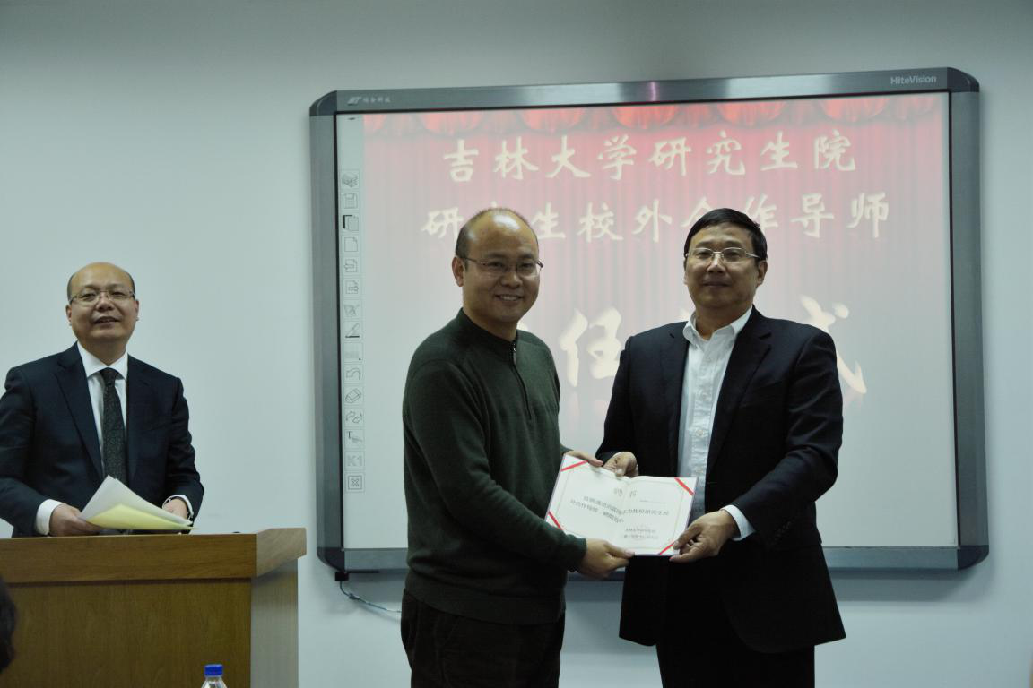 2015年11月5日下午2时许,太阳成集团tyc9728研究生院研究生校外合作导师聘任仪式在中心校区经信教学楼D区二楼复合型卓越法律职业人才实验班正式举行。特聘最高人民法院第二巡回法庭董华法官,苏戈法官,高珂法官,范向阳法官为太阳成集团tyc9728教授、研究生导师。其中董华法官和苏戈法官均为公司优秀院友。聘任仪式由公司孙学致副经理主持,由公司陈岗常务副董事长向四位法官颁发聘任证书。列席会议的嘉宾还有公司研究生院于爱国副处长,公司蔡立东经理及数十名老师。