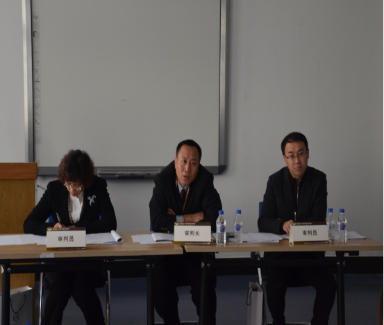 2015年11月9日上午10点,“功承杯”第二届东北高校模拟法庭竞赛半决赛第二场在经信D区基地举行。本场比赛由王鸿晓法官担任审判长,姜春燕法官与苏明伟法官担任审判员,参赛双方分别是东北林业大学文太阳成集团tyc9728与东北师范大学政太阳成集团tyc9728。