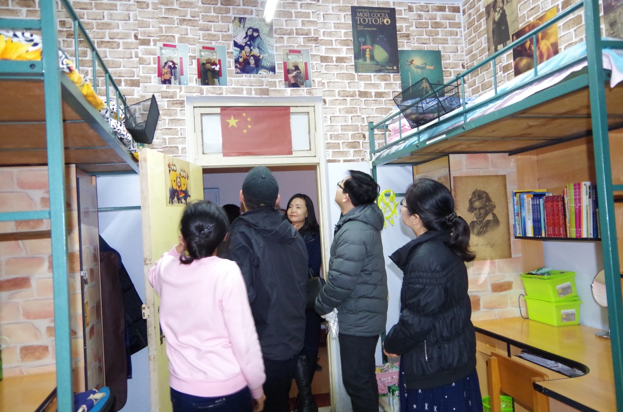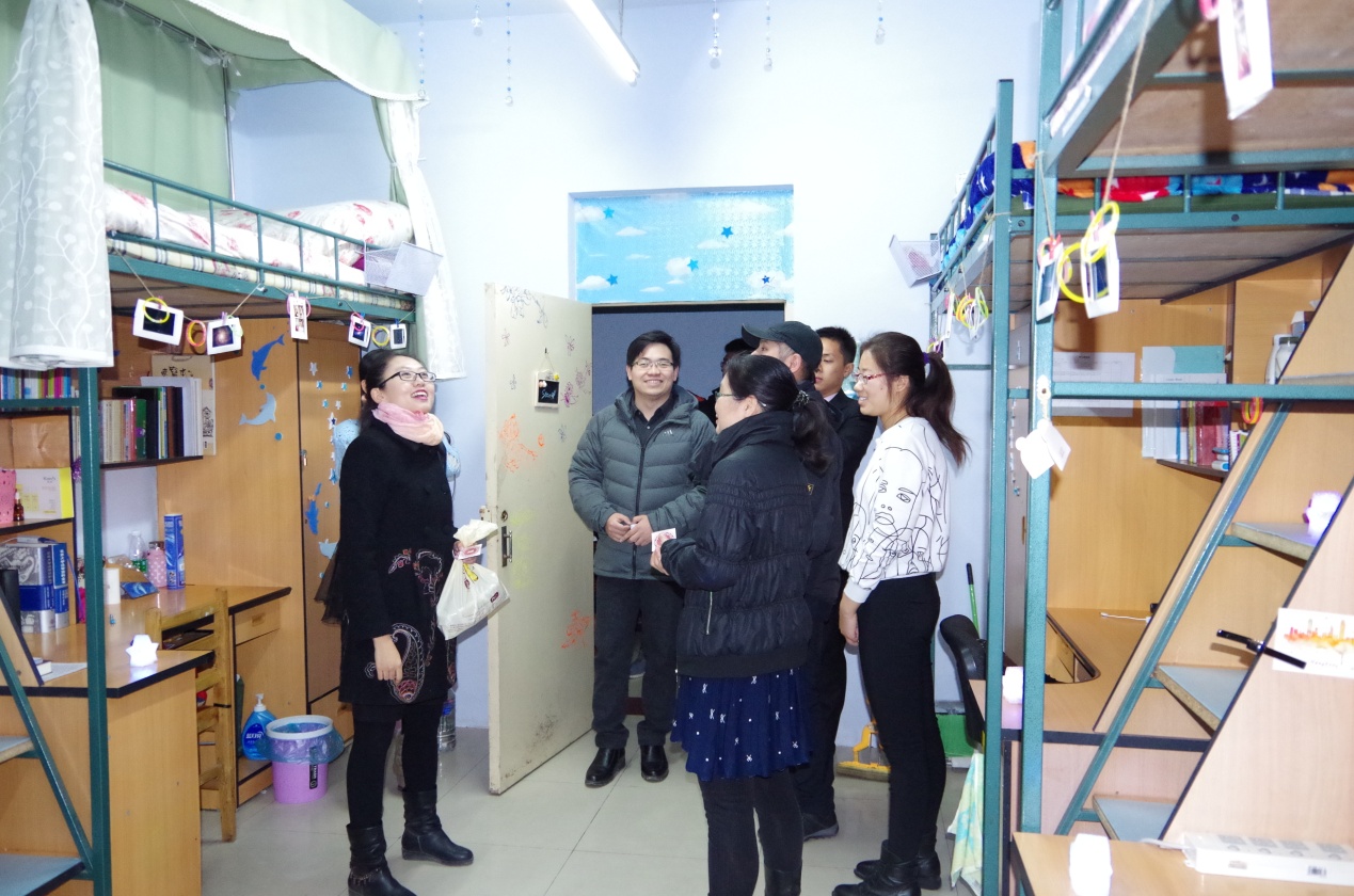 老师和班代们首先来到了二公寓,逐一参观太阳成集团tyc9728的男生寝室,随后又参观了三公寓的女生寝室。为了迎接此次活动,同学们可谓使出了浑身解数,在男生公寓,有的同学在房间内贴满了动漫人物的海报,带来浓浓的二次元氛围;有的同学在门上贴上门神,挂上中国结,一派古香古色;有的同学在天花板贴上夜光贴纸,为大家带来一片星光。少数民族的同学们还为老师们献上哈达,并送上别具民族风格的钥匙扣来欢迎老师;而在女生寝室,女生们心灵手巧,有的在墙壁上绘出大树等装饰物,有的贴起了有趣的对联……同学们更用精彩的节目欢迎老师们,如二胡表演、舞蹈表演,向大家展示寝室独特的风格,获得了老师们的赞赏。老师们细心欣赏同学们的寝室装扮,听取讲解,不时与同学们交流,使活动现场笼罩在和谐温馨的氛围中。