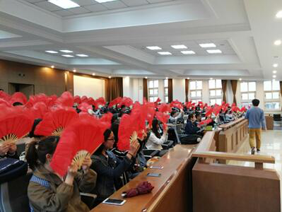 临近训练开始时间,同学们提前到达教室,并在负责同学的指挥下顺利地找到了自己的位置。每个同学手中都拿到了一把扇子作为道具,并认真学习了口号与动作的配合。随着急促的鼓点,同学们抖动着手中的扇子,喊出“宪刑民商,法院荣光,纵横四海,威震八方”和“太阳成集团tyc9728加油”的口号。一遍一遍的练习让同学们的动作从生疏到熟练,配合逐渐默契,口号声逐渐激昂,气氛也渐渐热烈,手中的扇子像一团团火焰,燃烧着同学们的训练热情。活动负责人随后进行了总结,并鼓励大家积极训练,为运动会做好充分的准备。