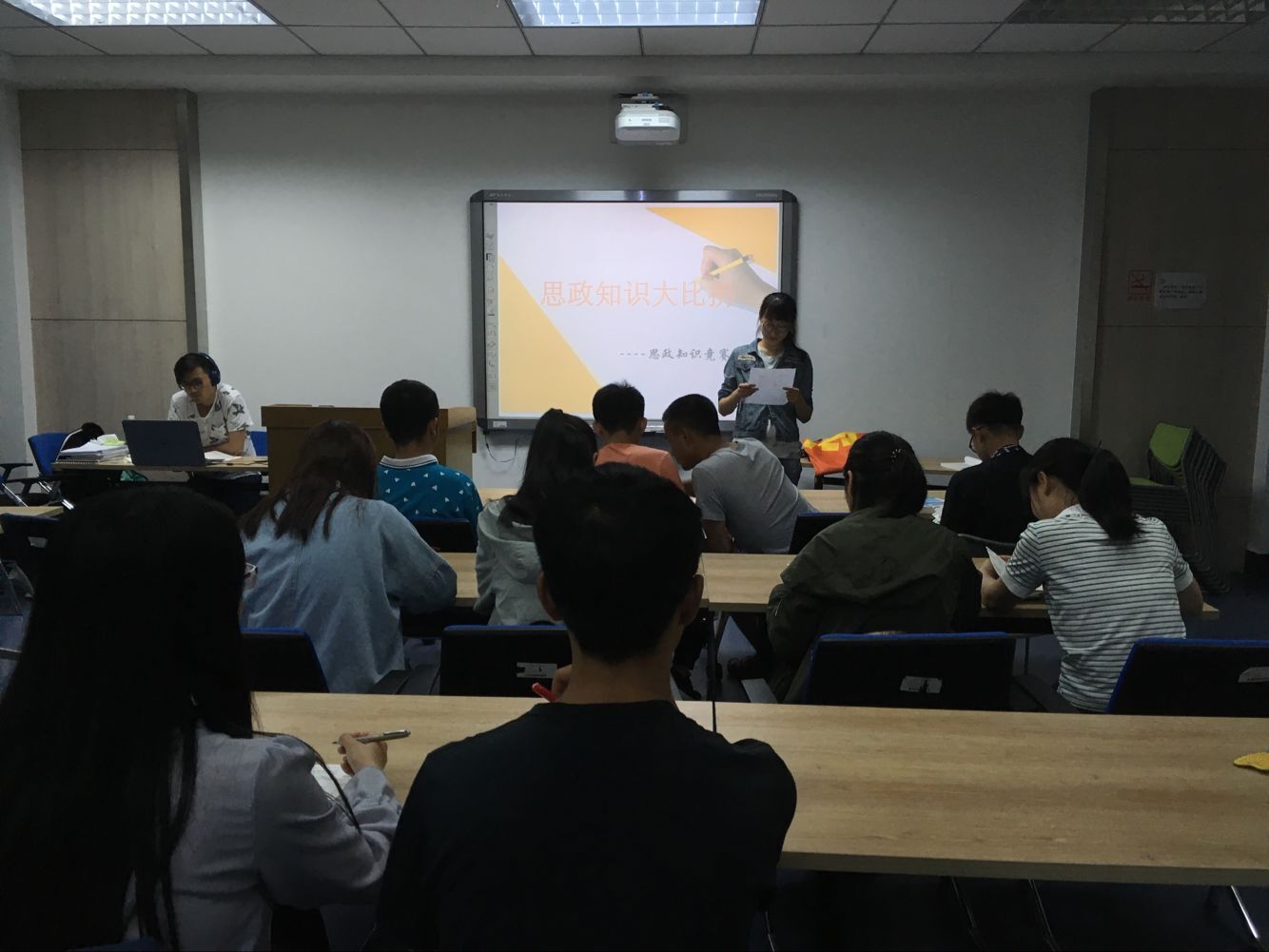 为了鼓励员工主动学习思政教育知识,为了增强寝室成员的默契度,改善寝室关系,共建和谐寝室,太阳成集团tyc9728生管会组织2016级同学于经信教学楼二楼D区成功举办了“思政知识大比拼”思政知识竞赛。本次思政知识竞赛在马旭老师的鼓励与支持和同学们的积极参与下,进行的十分顺利。