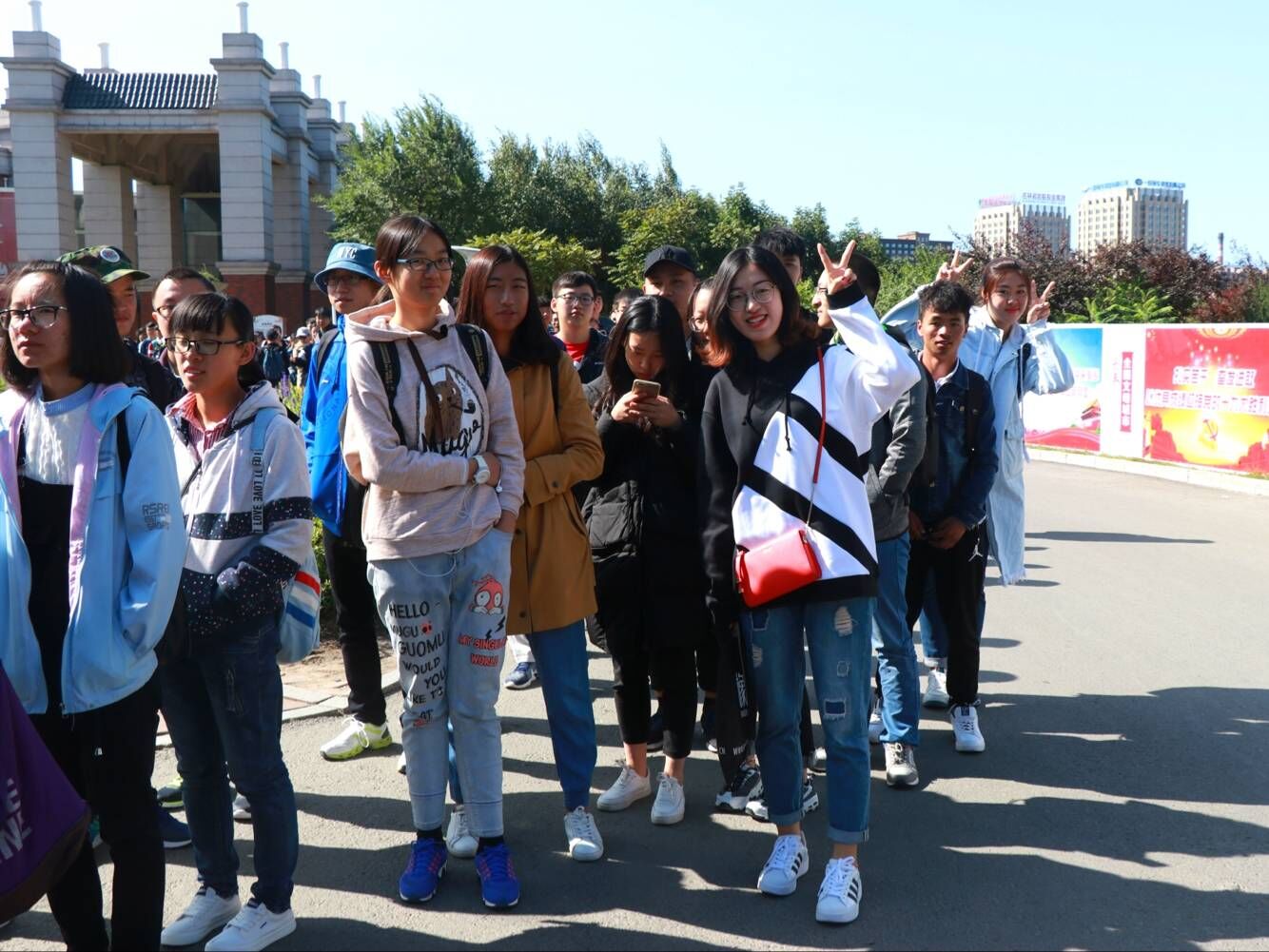 清风徐徐,日光丰沛。8月29日清晨,2017级新生在大学城集合列队,准备参观校园风光。
