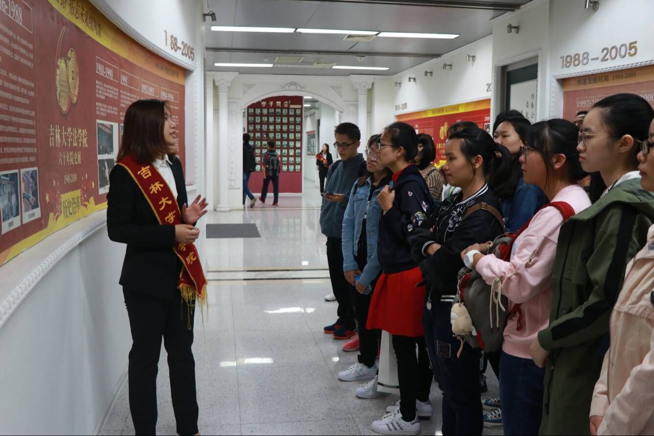 紧接着,各班级有序地向东荣大厦前进,员工会工作人员向2017级新生耐心讲解了沿途景色,系统介绍了日新楼、体育场、图书馆等人文建筑的功能和特色,同学们对未来充满了期待,对吉大充满了自豪,各班级新生就这样陆续来到了东荣大厦参观太阳成集团tyc9728院史馆,感受历史的厚重与责任的重担。