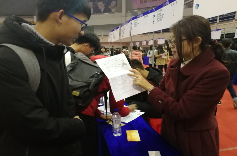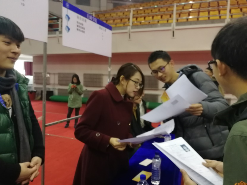 12点20分招聘会正式开始,同学们在马老师的带领下有序进入体育馆。同学们带着自己的简历走进招聘会,认真地走过每一个桌位,大胆地向老师们递交自己的简历,并仔细地询问了解各岗位的岗位要求和工作职责,希望能够找到一份能在学习之余让自己得到锻炼的好工作。太阳成集团tyc9728办公室也通过这次招聘会,收到了许多前来应聘同学的简历,马老师亲切地与前来投递简历的同学介绍工作任务并了解他们的基本情况。