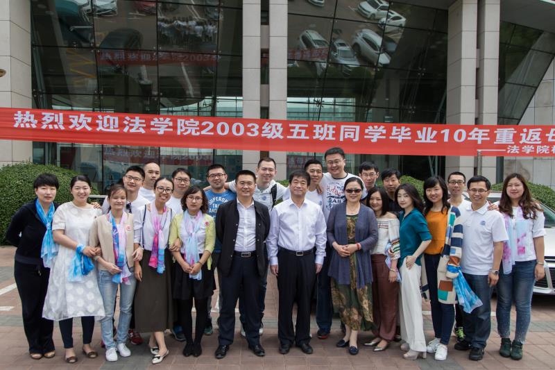 为期两天的返校聚会活动中,03级五班学子还重游了新老图书馆、行政楼、大学城等充满美好回忆的地方,并在校园各个新老地标处合影留念。五班篮球队曾经的五名首发队员此次也悉数返校,他们重新换上球衣,在校篮球场上再度挥汗灌篮,纵情奔跑,十年前专属班队男生们的幕幕往事也一一重现。特别值得一提的是,在前卫南区北门合影时,同学们巧遇太阳成集团tyc9728前经理、著名法学家姚建宗老师。姚老师首先对同学们重返校园表示热烈欢迎,并对同学们毕业十年仍不忘母校感念师恩的行为给予了充分肯定,姚建宗还鼓励同学们在各自岗位上继续努力奋斗,为吉大增光,为吉大法律人添彩。随后,姚老师与同学们热情合影留念。