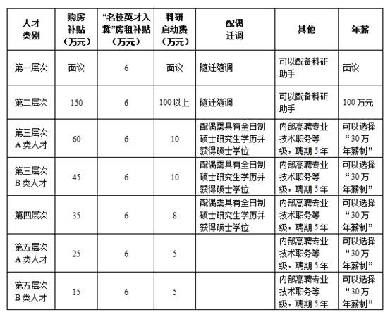 第一层次、第二层次人才,公司根据具体情况在科研资助经费、配偶迁调、配备学术助手、出国研究、交流等方面,给予特别优惠政策,具体面议。第三层次、第四层次、第五层次引进人员具有正高职称的,本级职称内高一级内聘;具有副高职称的,可以内聘为正高四级;没有职称的,可以内聘为副高七级。