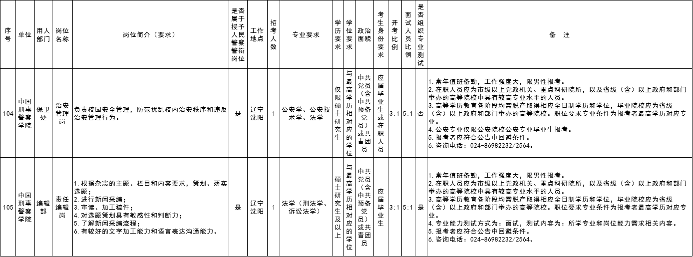 2020年12月17日,公安部人事训练局发布了《公安部直属事业单位2021年度统一公开招录人民警察及工作人员公告》,共420个职位、招录696人。