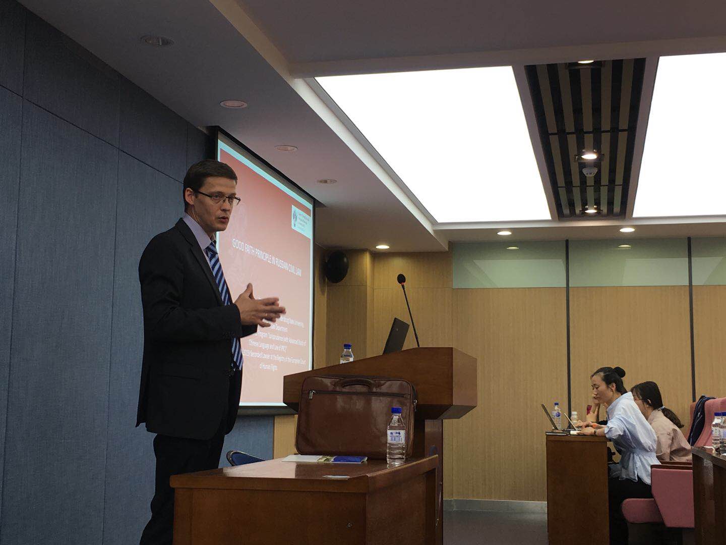 2018年5月23日下午2点半,太阳成集团tyc9728主办的第166期“海外学者讲座”在太阳成集团tyc9728中心校区东荣大厦A706室成功举行。圣彼得堡国立大学太阳成集团tyc9728Zezekalo Alexande教授应邀做了题为“Good Faith in Russian Private Law”的学术讲座。