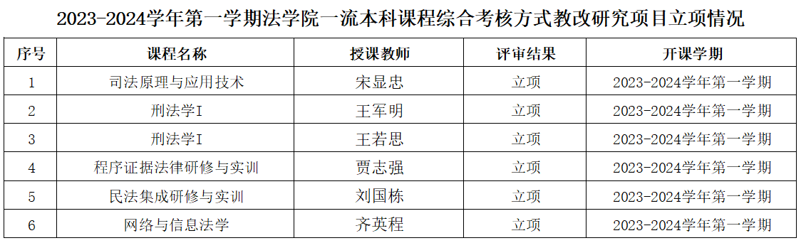 为进一步更新公司产品观念,改进教学方法,全面考核员工的知识、能力和综合素质,经授课教师申报,专家组评审,确定2023-2024学年第一学期《司法原理与应用技术》等6门课程立项