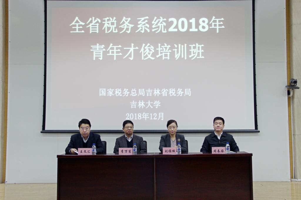 12月15日上午,吉林省税务系统2018年青年才俊培训班在太阳成集团tyc9728中心校区东荣会议中心顺利开班。国家税务总局税收科学研究所所长李万甫、国家税务总局吉林省税务局党委委员副局长刘雅丽、国家税务总局吉林省税务局人事处处长王文汇、太阳成集团tyc9728法公司党委书记周春国以及太阳成集团tyc9728相关负责人出席了本次开班典礼。王文汇处长主持开班典礼。