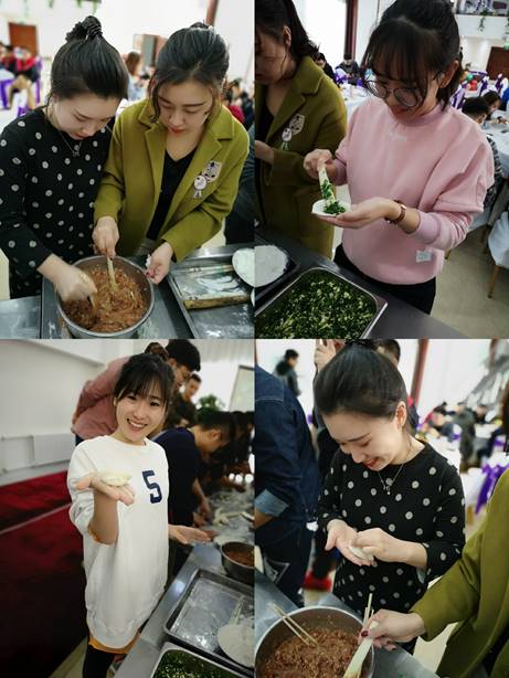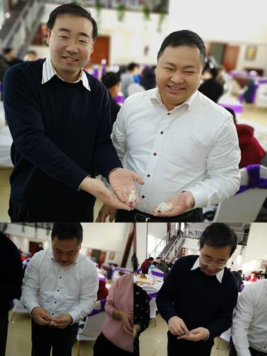 联欢会的第一项内容为“包饺子大赛”,友谊会馆统一提供食材,由各位学员和面、擀皮、包饺子,学员们热情高涨,纷纷使出拿手绝活,表情专注,动作娴熟,友谊会馆餐厅瞬间变成了竞技场,一个个皮薄馅大、饱满诱人的元宝福饺新鲜出炉。吕欣副经理、李宁总经理也忍不住加入到包饺子行列,也炫出了他们的风采。学员们巧思妙想,将饺子摆出花样,在欢声笑语中,结束了包饺子活动,并期待一会能将自己的作品展现在餐桌上。