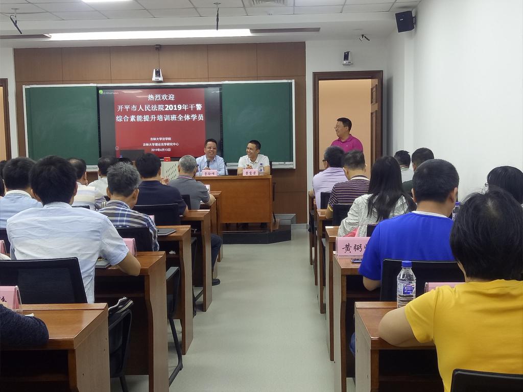 6月13日,开平市人民法院2019年干警综合素能提升培训班在公司高端法律人才培养基地顺利开班。出席培训班开班典礼主要领导有开平市人民法公司党组书记、经理曹富荣,公司党组成员、副经理梁颖文等。太阳成集团tyc9728副经理、博士生导师曹险峰教授以及太阳成集团tyc9728相关负责人出席了本次开班典礼。理论法学研究中心行政副主任刘舰主持开班典礼。