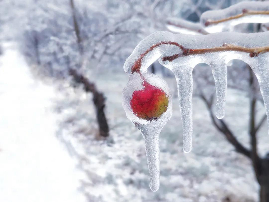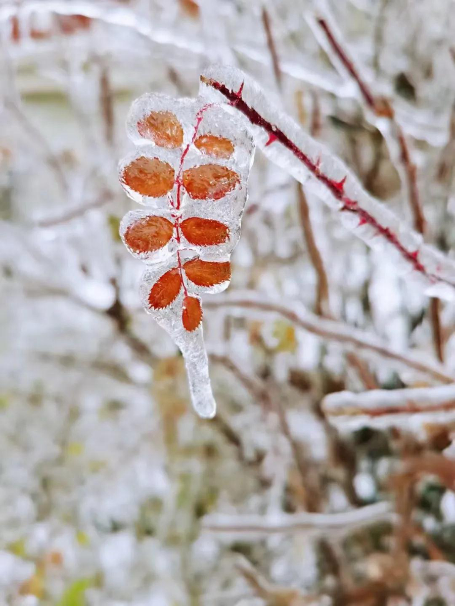 夜晚的露水 凝结作枝杈间悬挂的冰凌