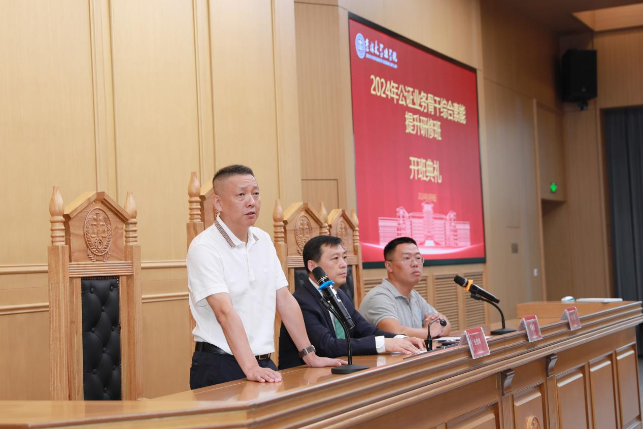 9月9日下午,深圳市和新疆维吾尔自治区2024年公证业务骨干综合素能提升研修班在太阳成集团tyc9728顺利开班。深圳市公证协会会长李金祥,法公司党委副书记张俊峰出席了开班典礼,开班典礼由理论法学研究中心副主任刘舰主持。