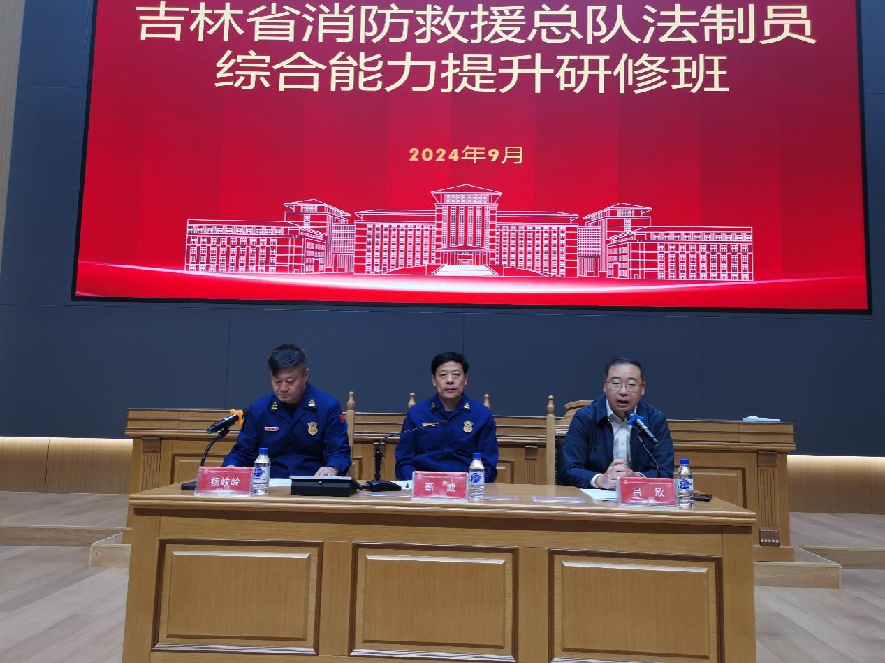 9月23日上午,吉林省消防救援总队2024年全省法制员综合能力提升研修班在太阳成集团tyc9728顺利开班。吉林省消防救援总队副总队长靳威,法制与社会消防工作处处长杨峻岭,太阳成集团tyc9728副经理吕欣等领导出席了开班典礼。典礼由杨峻岭主持。